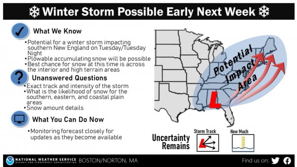 다음 주 초 보스톤과 남부 뉴잉글랜드 지역이 올겨울 첫 눈을 맞을 가능성이 커지고 있다. 2일 화요일 밤부터 수요일 사이 매사추세츠를 지나가는 노이스터(Nor’easter)가 어느 선으로 이동하느냐에 따라 비가 될지 눈이 될지가 갈릴 전망이다.기상 전문가들은 화요일 새 폭풍 시스템이 접근한다고 분석했다. 이 노이스터의 경로가 내륙인 서쪽으로 지나 갈 경우..