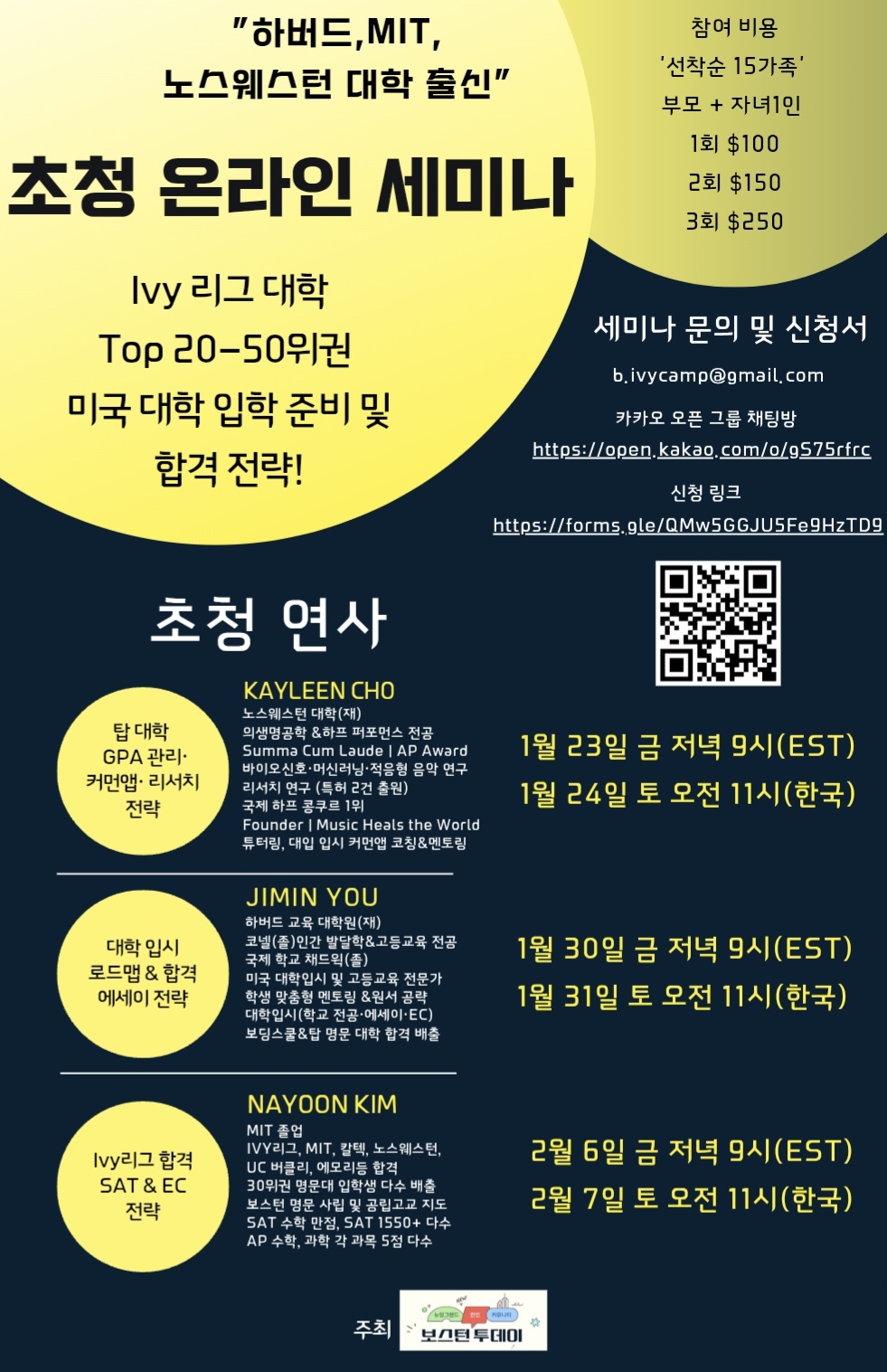 기타 하버드·MIT·노스웨스턴 출신들이 직접 전하는 미국 대학 입시 전략 온라인 세미나