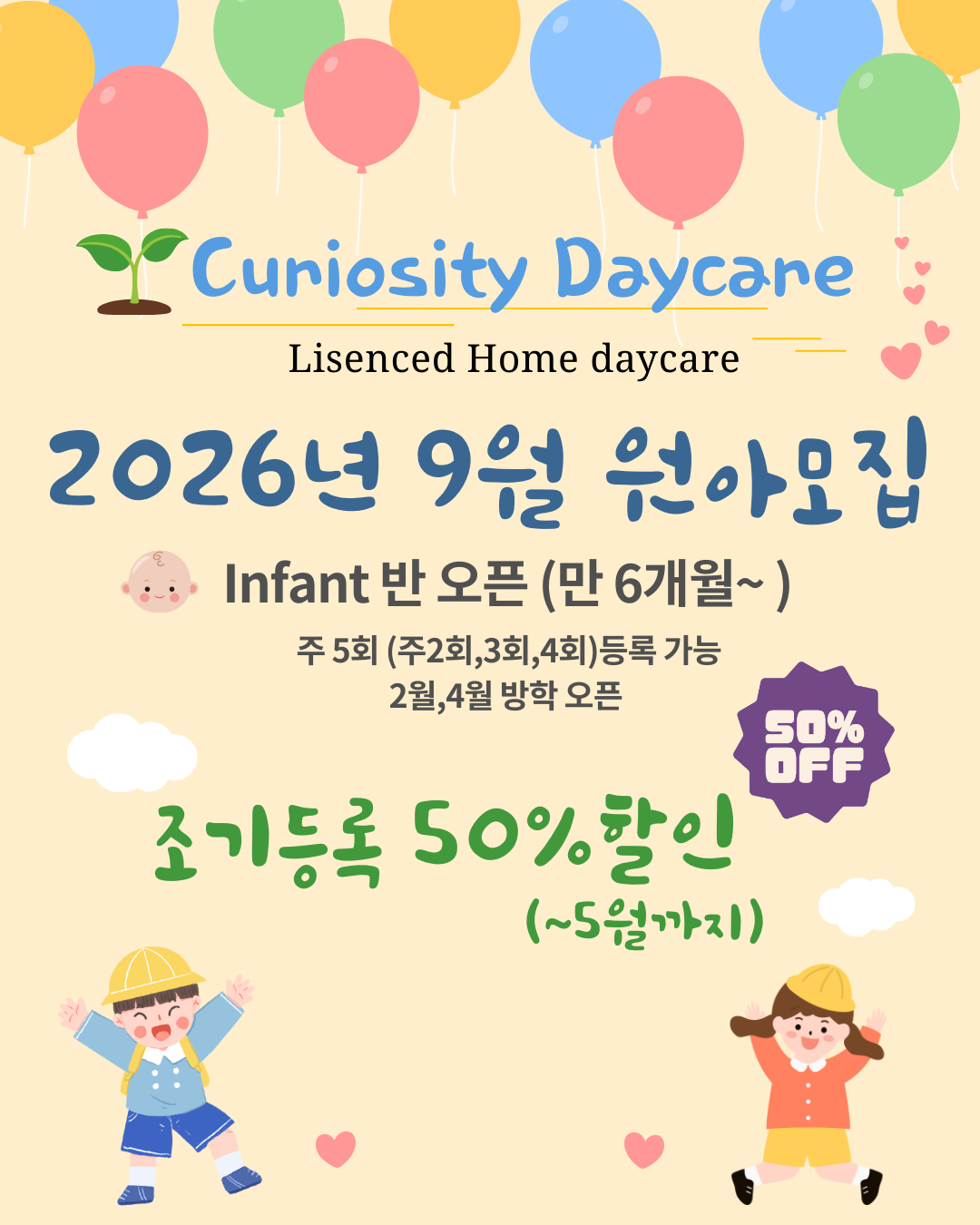 기타 [[ 호기심 어린이집 ]] # 9월 원아 모집 # 5월 조기등록 할인 # Infant 반 오픈 #