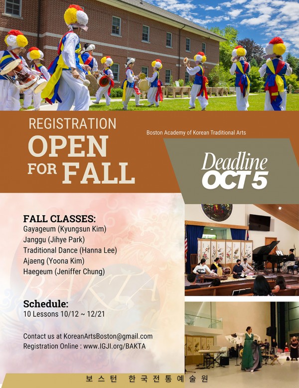 보스턴 한국전통예술원 2025년 가을학기 등록 안내 |