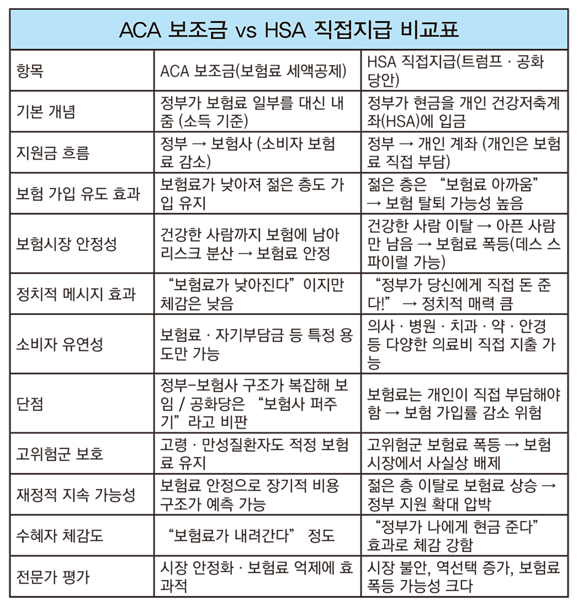 | ACA 보조금 종료 시 보험료 두 배 이상 급등… 병원·기업·가계 연쇄 충격 우려 12월 중순 의회 보조금 연장 표결 앞둬… 전문가들 돌이키기엔 너무 늦은 감 |