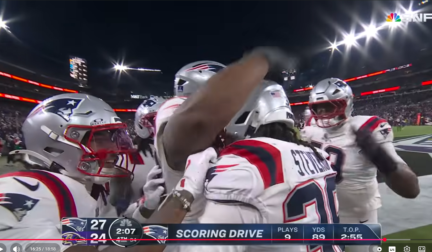 뉴잉글랜드 패트리어츠, 볼티모어에 극적 역전승… NFL 플레이오프 진출 확정