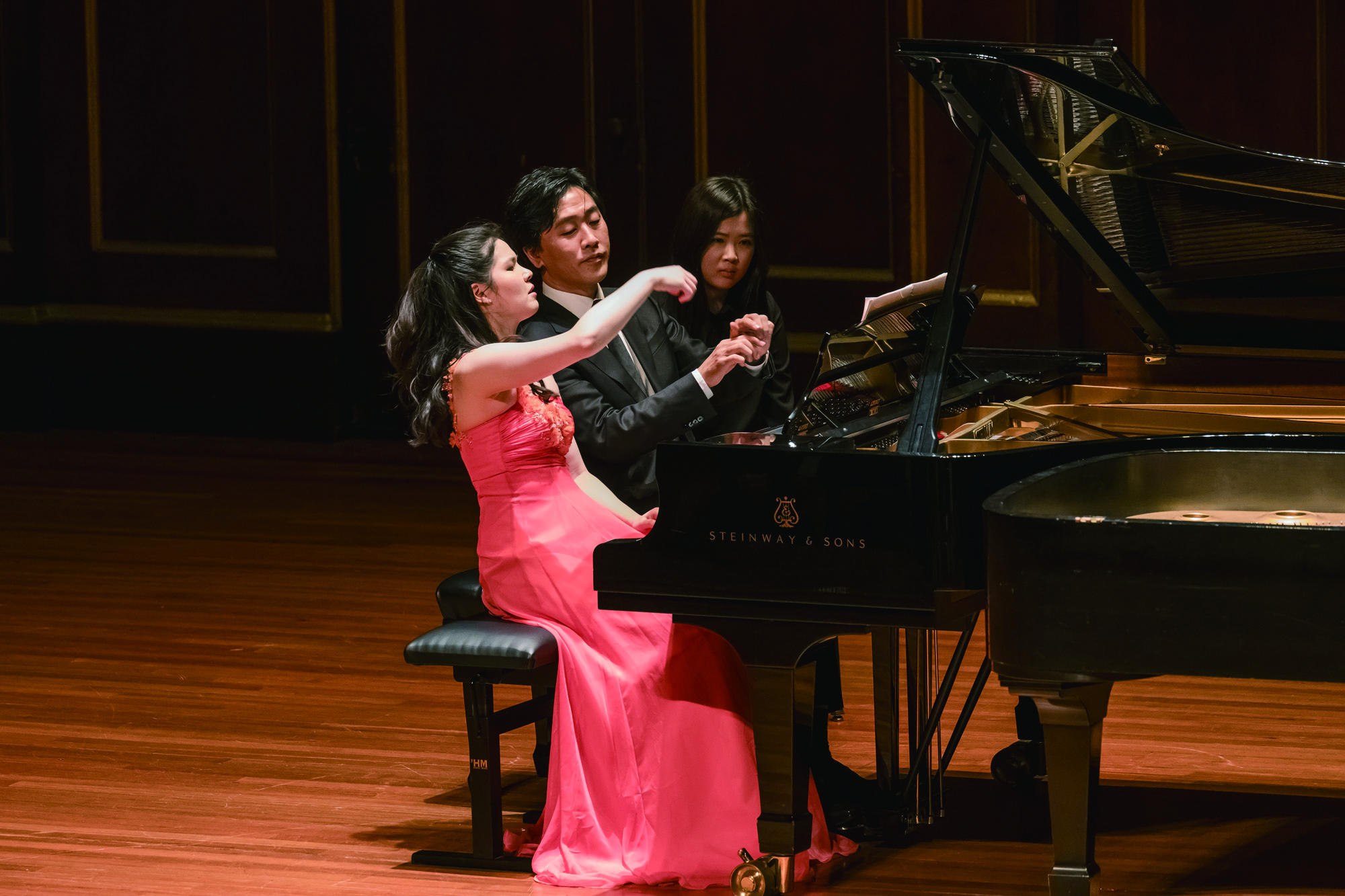 9월 30일 한미예술협회가 주최한 3세대 피아노 음악회에서 NEC 백혜선 교수와 손민수 교수가 함께 피아노를 연주하고 있다. (사진 = 보스톤한미예술협회 전상수리(Sangsuri Chun))